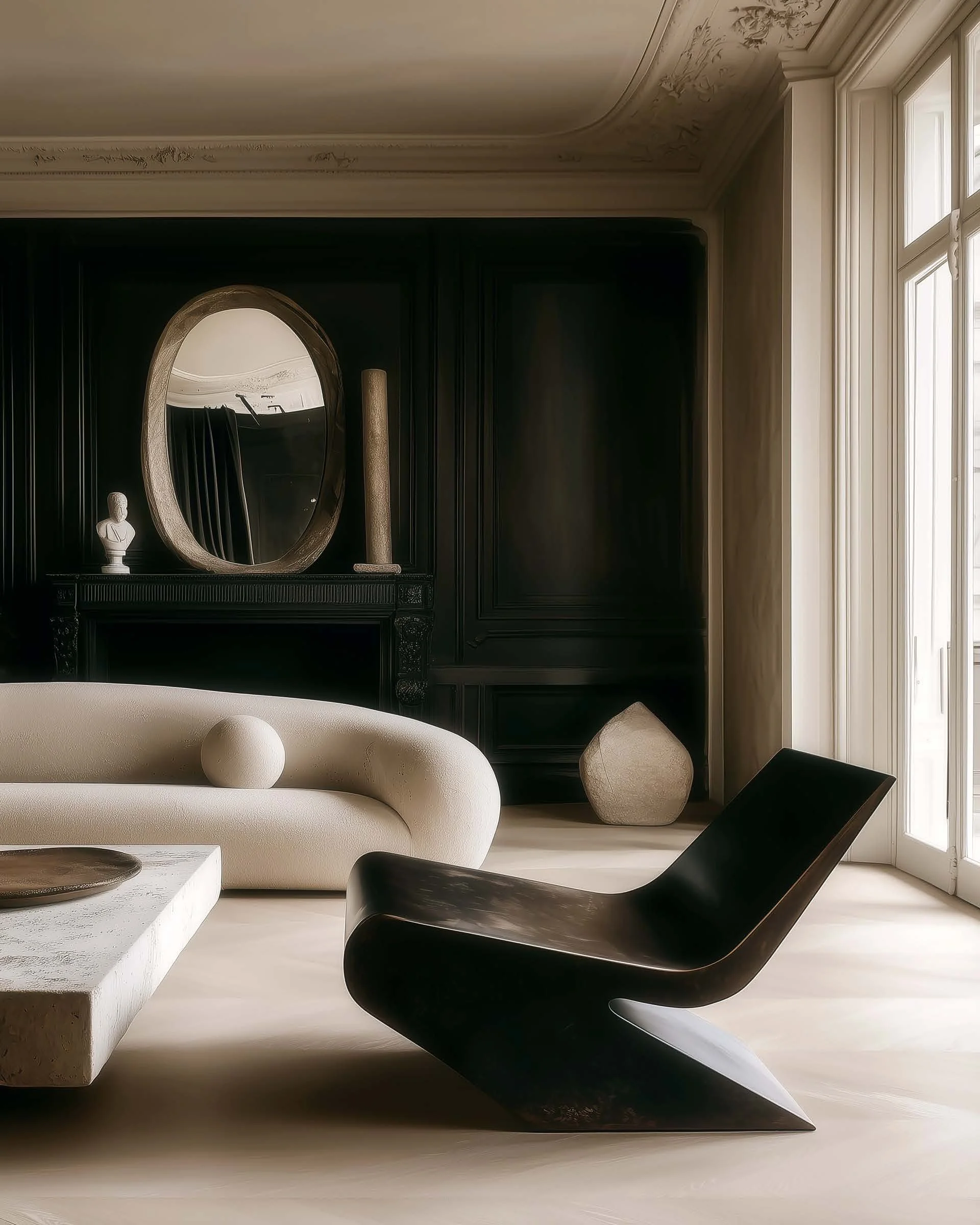 Formed in polished or blackened solid cast bronze, or carved from wood and finished in precision black lacquer, the collection expresses a quiet confidence and a poised intensity
