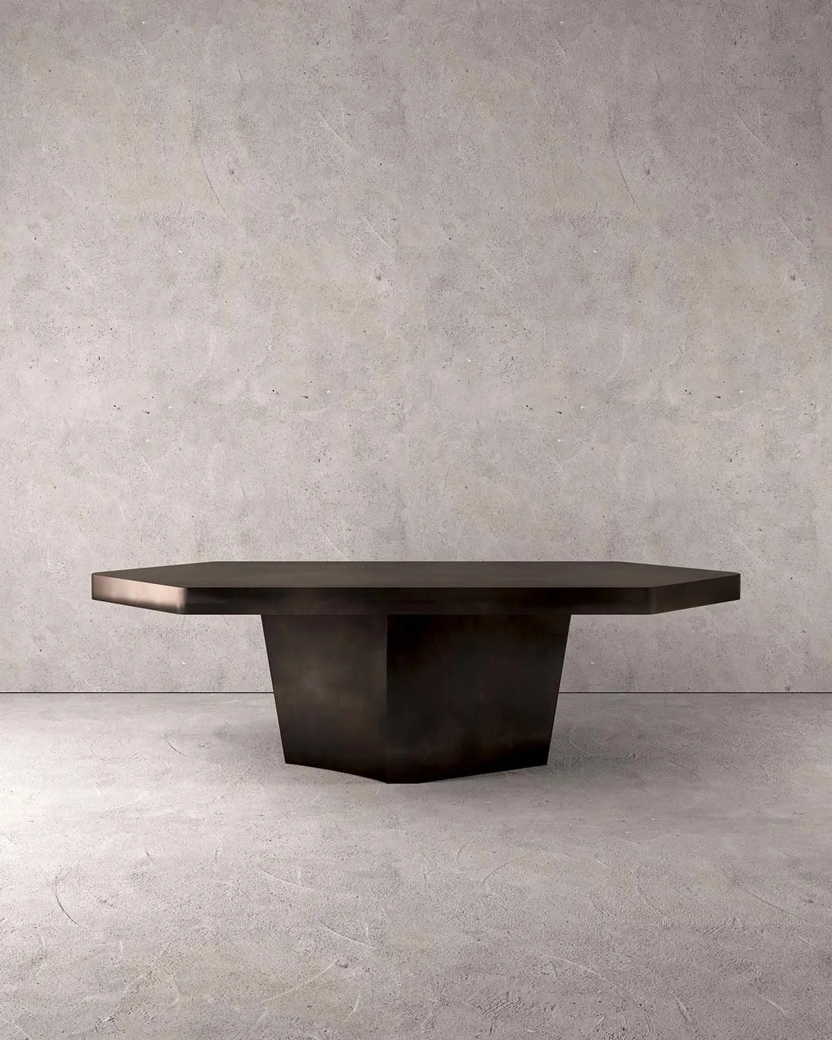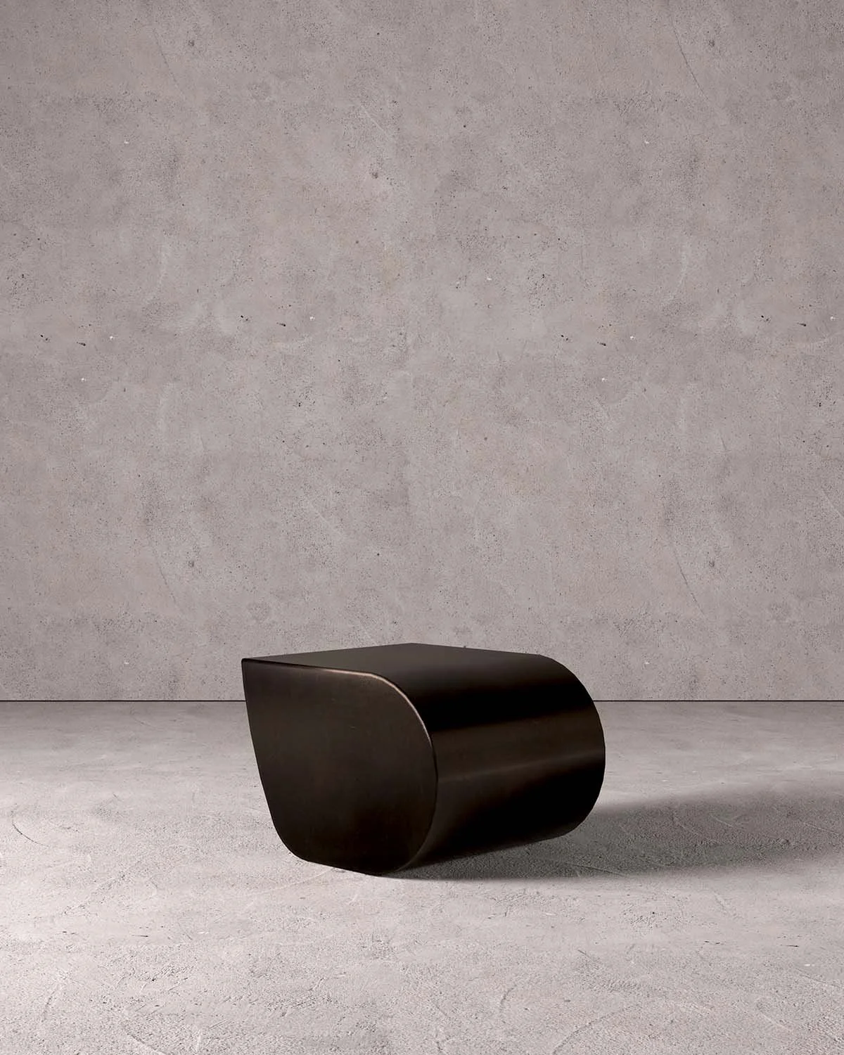 Forms emerge with controlled force, where mass gradually transitions into curve and edges soften into shadow, allowing each piece to shift subtly with light, movement, and human presence